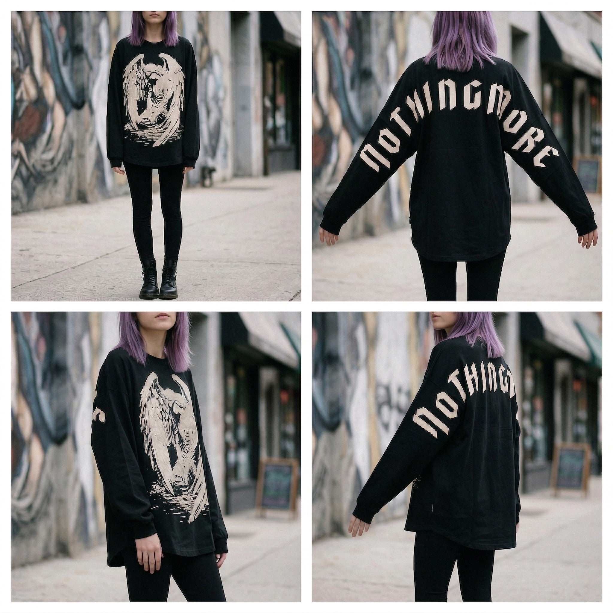 Falling Like Angels. Our latest collab with Spirit Jersey. Super nice, heavy weight long sleeve with the trademark puffy print on the back. Oversized fit.